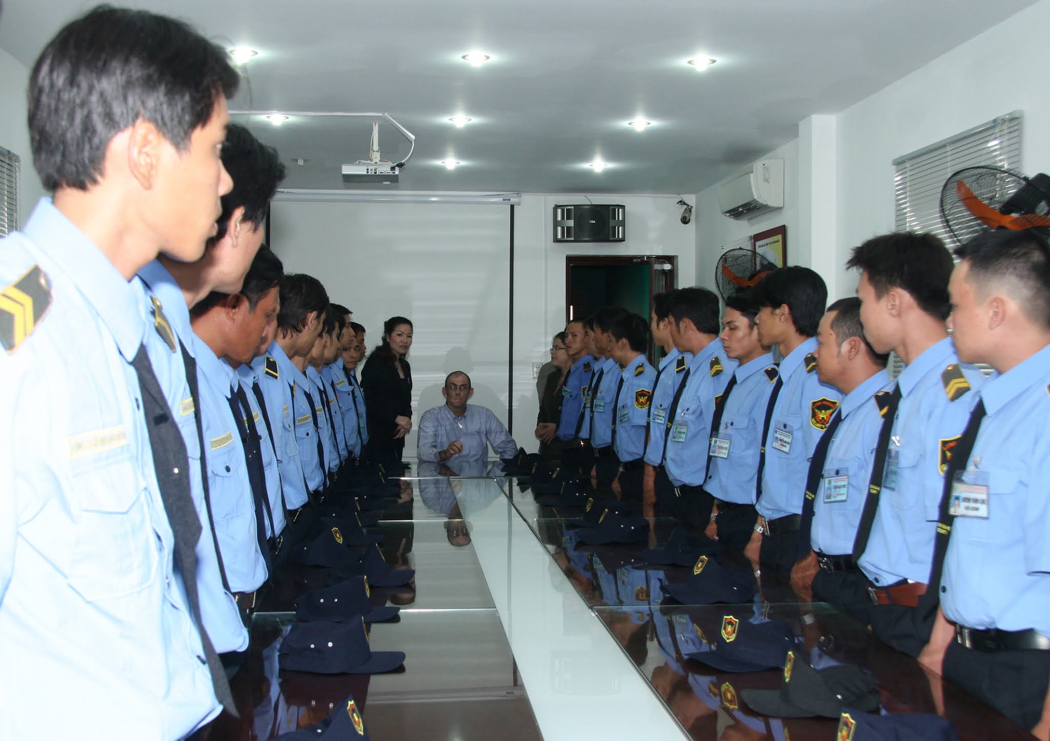 – Công ty chúng tôi có đội ngũ nhân viên bảo vệ được đào tạo huấn luyện bài bản, chuyên nghiệp không chỉ về chuyên môn nghiệp vụ mà còn cả về kĩ năng giao tiếp, phẩm chất đạo đức, tính kỉ luật…